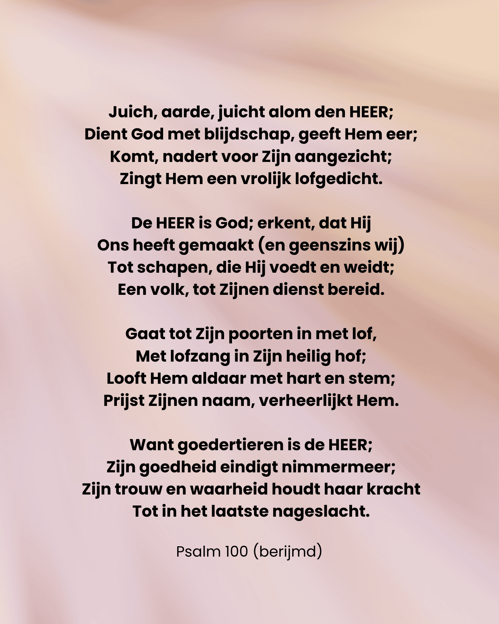 Hij schiep hemel en aarde. De maan en sterren, de natuur, de dieren, de mensen. Deze grote God schiep alles zo bijzonder. En daar stopt het niet. Nee, want Hij is er ook altijd bij betrokken. Ook vandaag de dag nog. En daar staan we vandaag bij stil. Dat hij er elke dag voor ons is.