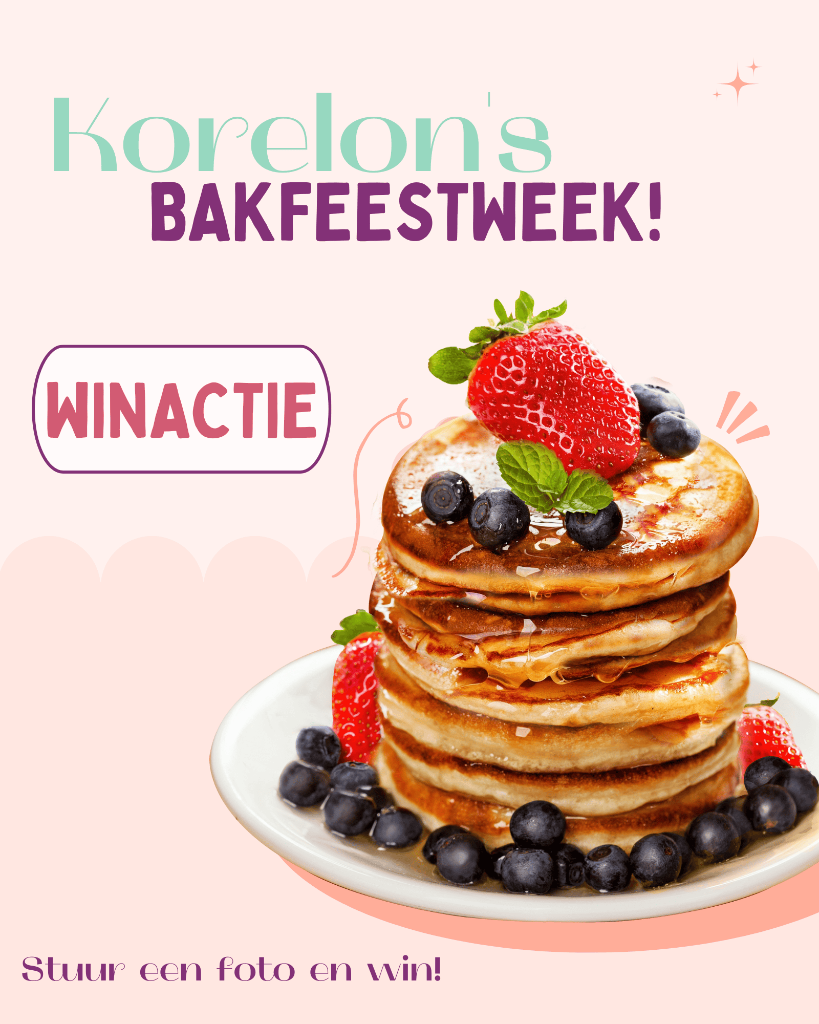 We hebben iets nieuws in het leven geroepen bij Korelon: de bakfeestweek! De week van 5 december toveren wij om tot bakweek. Ga gezellig een dag, meerdere dagen of de hele week met je (gast)kinderen aan de slag. Bak de lekkerste pannenkoeken, koekjes, poffertjes of taart, wat je maar wilt. Dik, dun, hartig, zoet, groot of klein alles kan en mag!