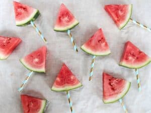 Kleuter: Deze watermeloen ijsjes zijn een super leuke fruittraktatie in de zomer. Je snijdt een paar watermeloenen in punten en in de schil steek je een vrolijk rietje als stokje.